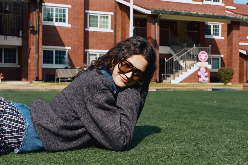 ブラックフレームのシャープさがその彩りを引き締め、柔らかさの中に凛とした雰囲気を。